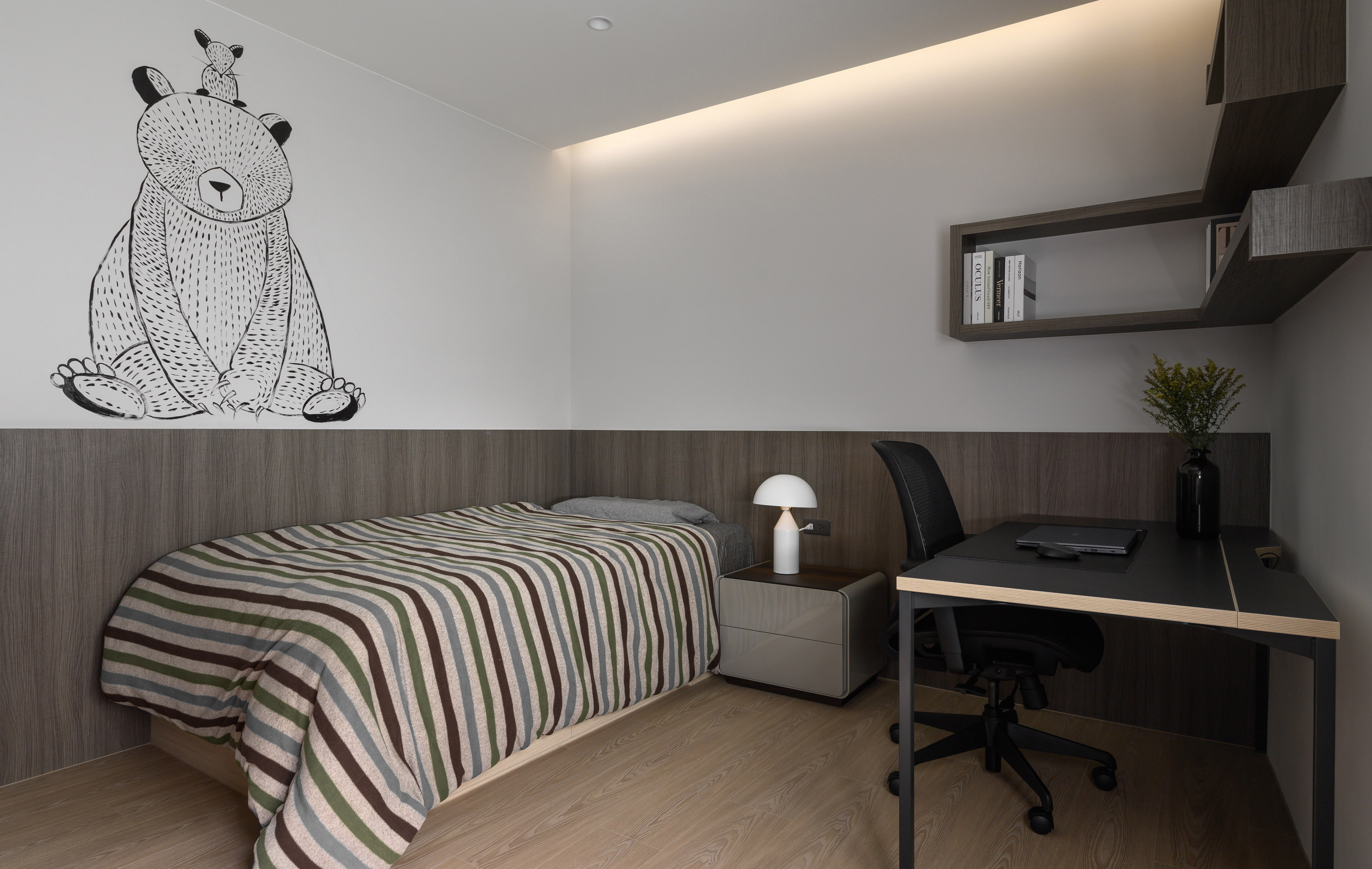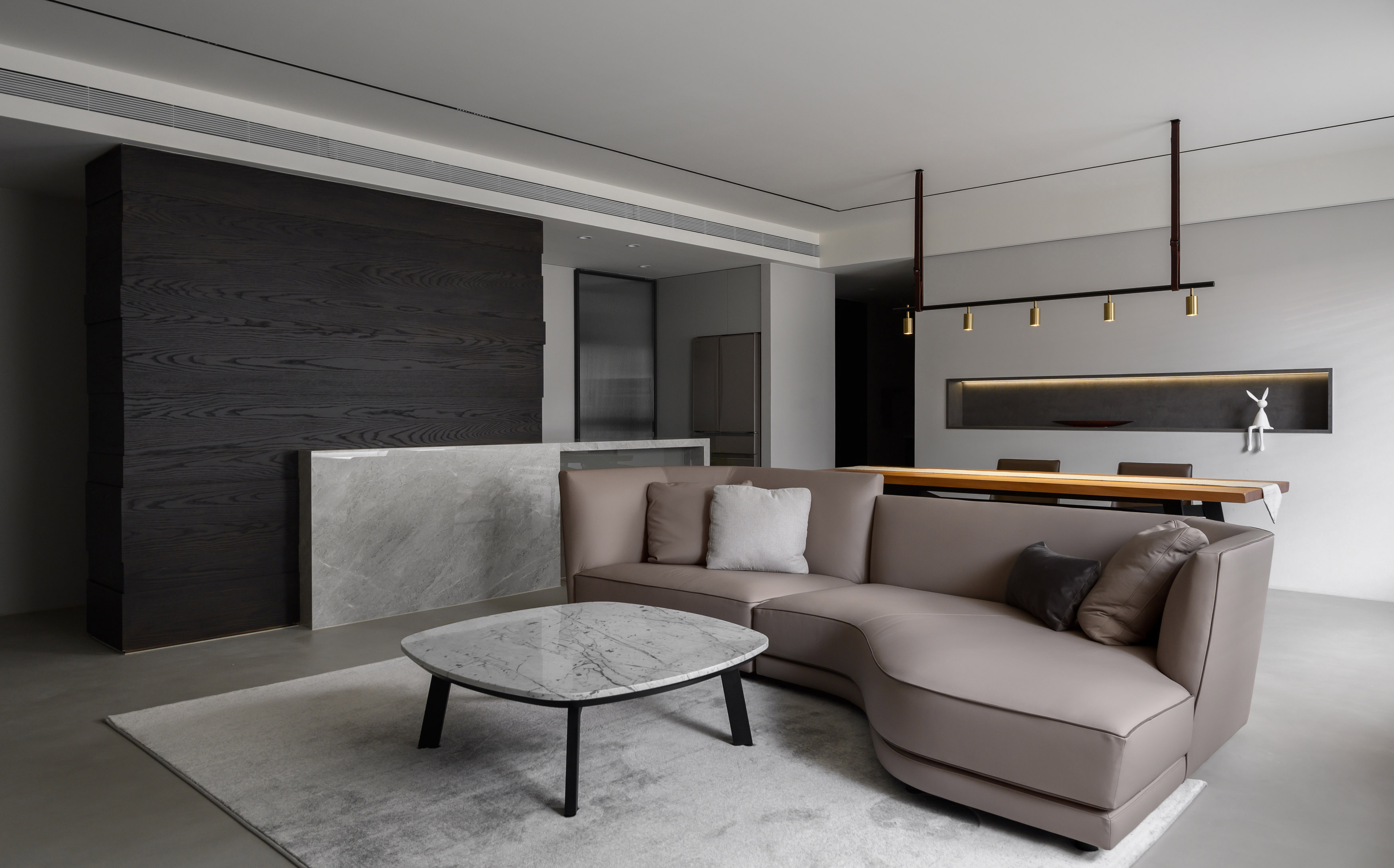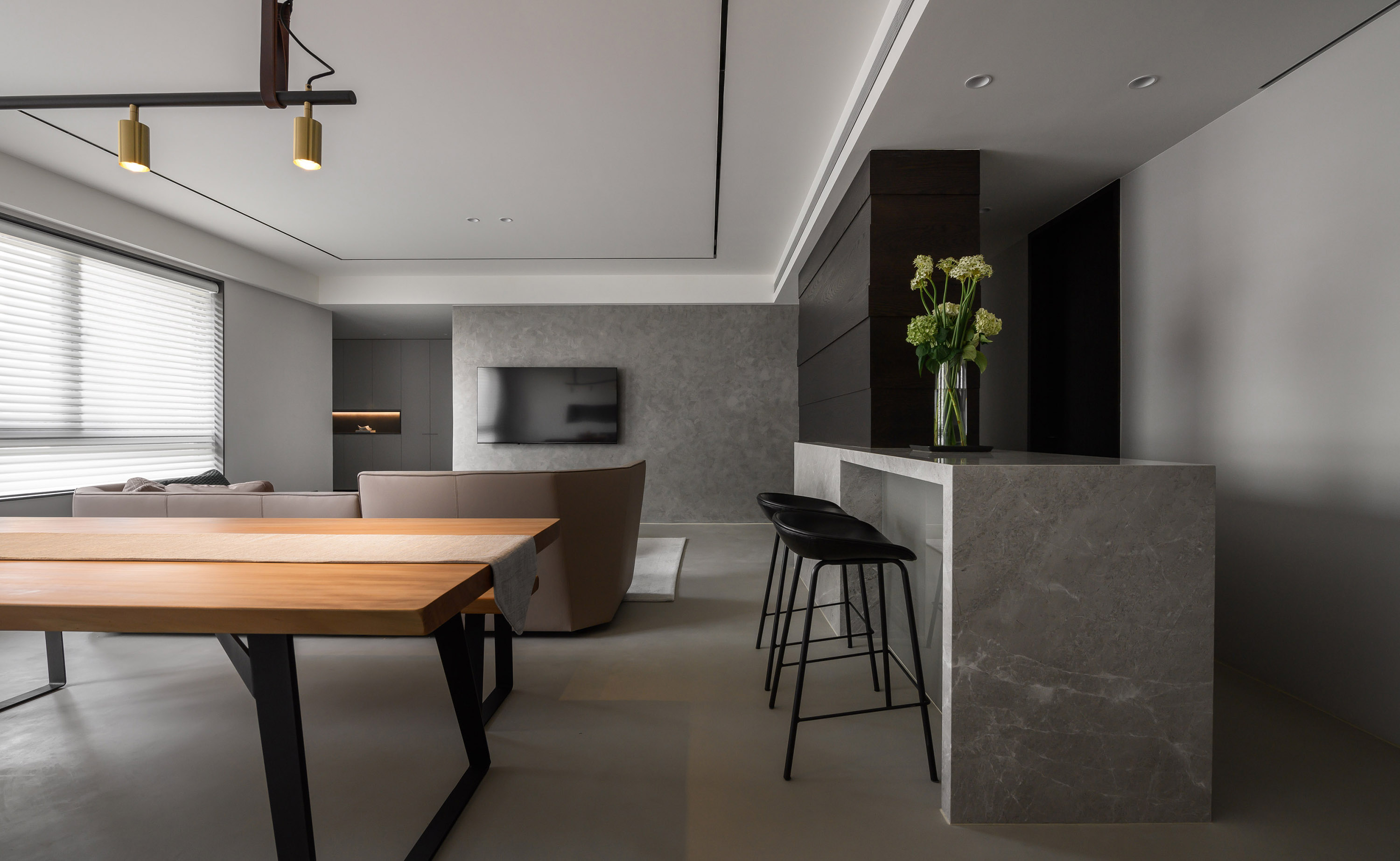 設計簡介:本案位於都市邊界,以「極簡、靜謐、質感」為設計核心,透過選材與光影的細膩鋪陳,形塑出一處符合當代生活節奏的安定居所。設計著重形式與機能的平衡,強調材料本質與細節語彙,營造低調卻富含張力的空間氛圍,創造隔絕城市喧囂、回歸日常本質的棲居場域。